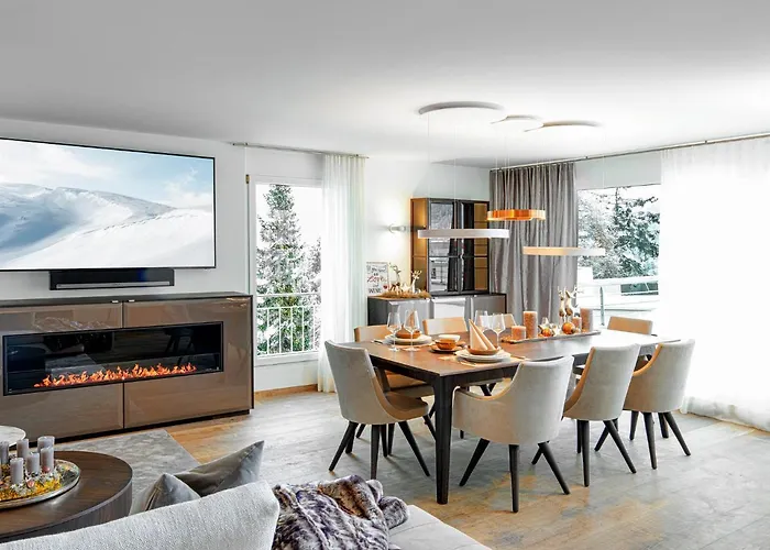 Offering spa facilities such as a Jacuzzi and a sauna, the 150 m^2 Top Apartment Davos 4.5 Rooms is situated 25 minutes on foot from Standseilbahn Hohenweg-Weissfluhjoch Parsennbahn 2. Guests can make the most of their stay at this 2-bedroom apartment by taking part in activities like snow skiing and hiking.
